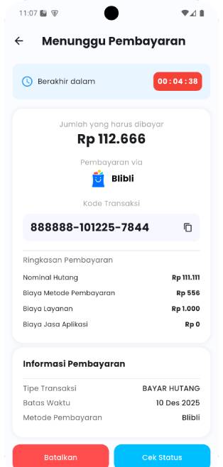 Tersedia juga berbagai metode pembayaran untuk kamu gunakan melakukan pembayaran hutang kamu.
